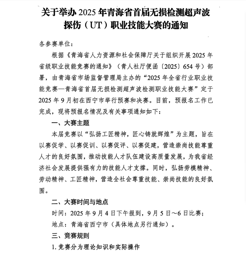 關于舉辦2025年青海省首屆無損檢測超聲波檢測探傷職業技能大賽的通知